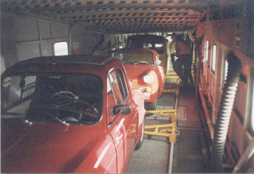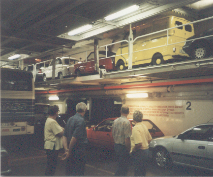 Die "Kleinen" kamen im Bauch des Schiffes in das obere Regal. Da hatten sie genug Platz (Gott sei Dank hat die Leistung für die steile Auffahrt gereicht). Wir übernachteten derweil in der 4-Mann-Kabine, die eine Fläche von 2m x 2m besass. | ||||||||||||||||||||||||||||||||||||||||||||||||||||||||||||||||||||||||